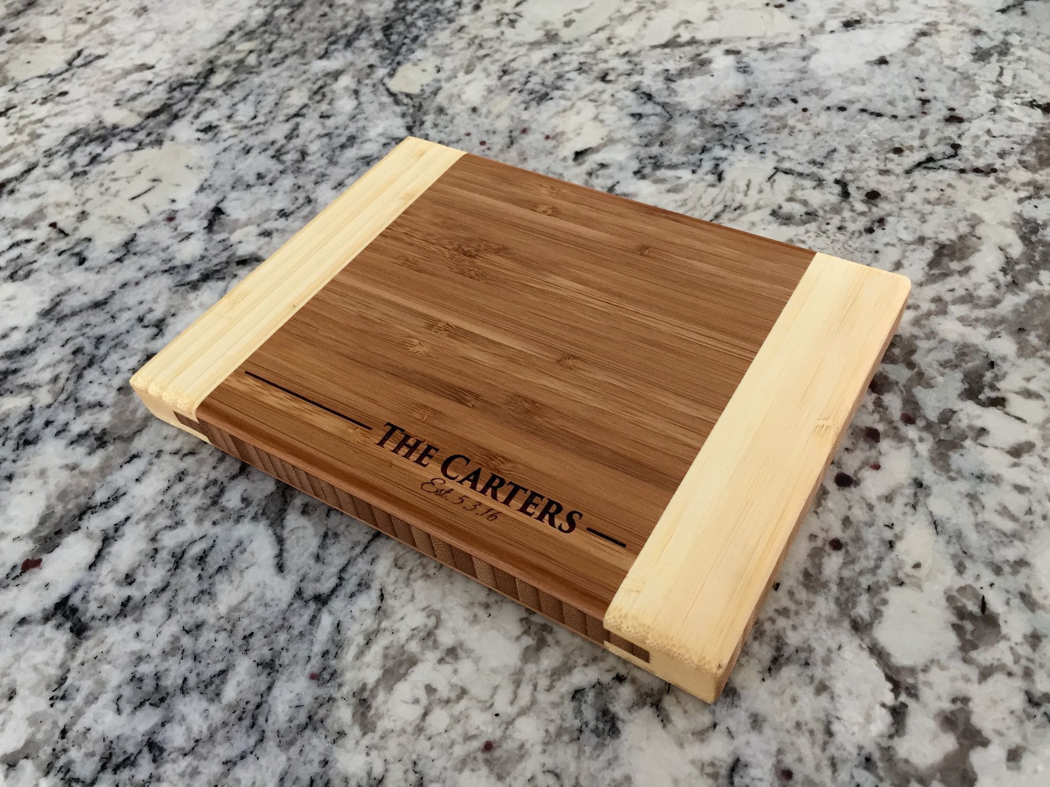 Our "Personalized 6x8 Bamboo Cutting Boards" are absolutely stunning. Hand-crafted from solid bamboo and laser engraved, our cutting boards will be the show-piece of your kitchen. It will add the perfect balance of beauty and sophistication to your home, whether on display or in use! They are also perfect gifts for any time of the year.